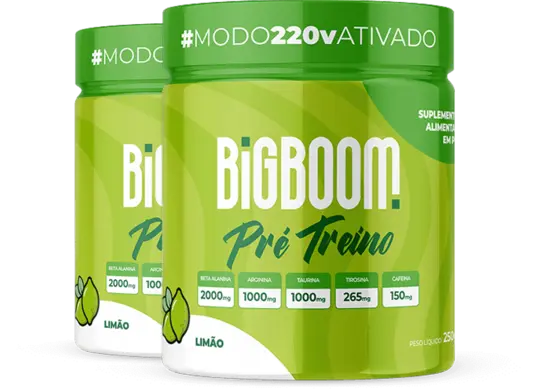 Recomendamos o consumo de 10g (2 medidas dosadoras) do Pré-Treino Bigboom aproximadamente 30 minutos antes do início de sua atividade física.